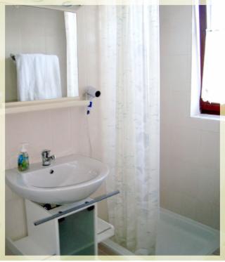 Bagno con WC, doccia, asciugacapelli e asciugamani