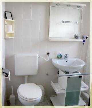 Kopalnica z WC, tuš, sušilec za lase in brisače